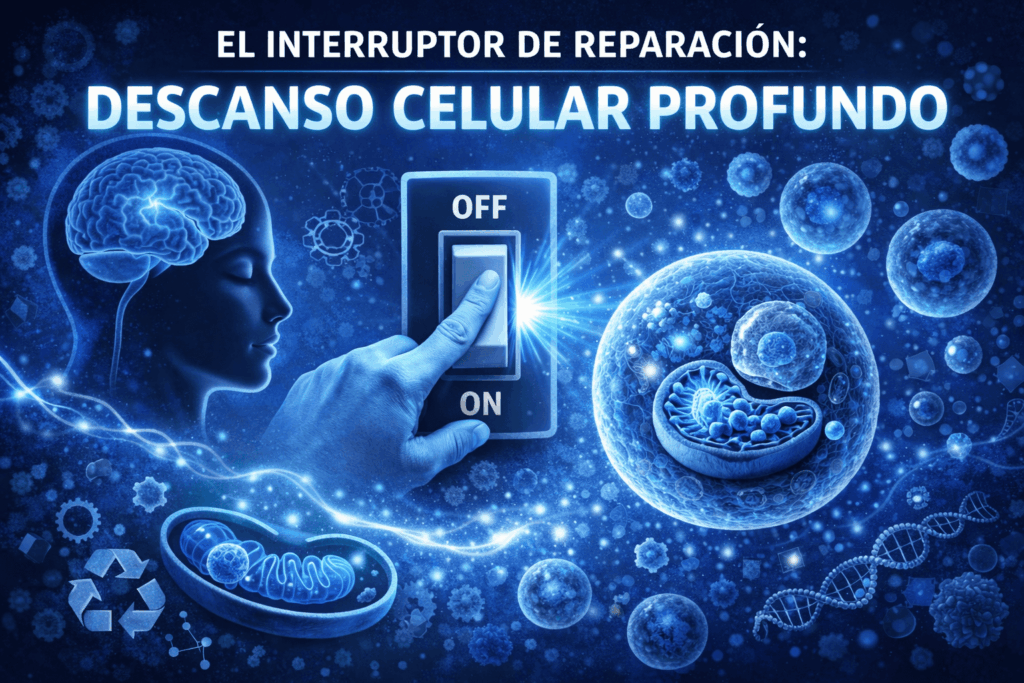 Si no apagas los estímulos externos (luces artificiales, cortisol elevado, digestiones pesadas nocturnas), el interruptor de reparación nunca se enciende del todo. Un cuerpo que no descansa a nivel celular es un cuerpo que solo puede parchar problemas, pero jamás regenerar tejidos.
